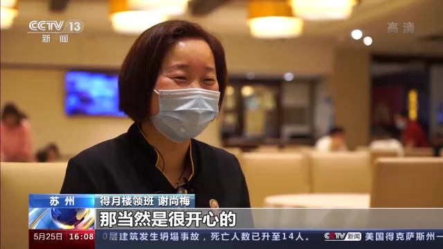 得月樓領(lǐng)班 謝尚梅:可以堂食可以上班了,當(dāng)然是很開心的。這樣的話就多一份收入了,多點收入開支上面也要富余一點。