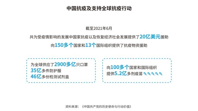 中國先后批準或加入了30余項國際人權文書,其中包括6項聯(lián)合國核心人權條約;累計共向166個國家和國際組織提供了援助,派遣60多萬名援助人員;多次無條件免除重債窮國和最不發(fā)達國家對華到期政府無息貸款債務。在聯(lián)合國維和行動中,中國是安理會常任理事國第一大出兵國,30多年來累計派出維和官兵5萬余人次。共建“一帶一路”已成為助力各國發(fā)展、深受世界歡迎的新興國際公共產(chǎn)品,據(jù)世界銀行研究報告,到2030年,將使相關國家760萬人擺脫極端貧困、3200萬人擺脫中度貧困。新冠肺炎疫情暴發(fā)以來,中國努力促進新冠疫苗在全球范圍內(nèi)公平合理分配,成為全球?qū)ν馓峁┮呙鐢?shù)量最多的國家。