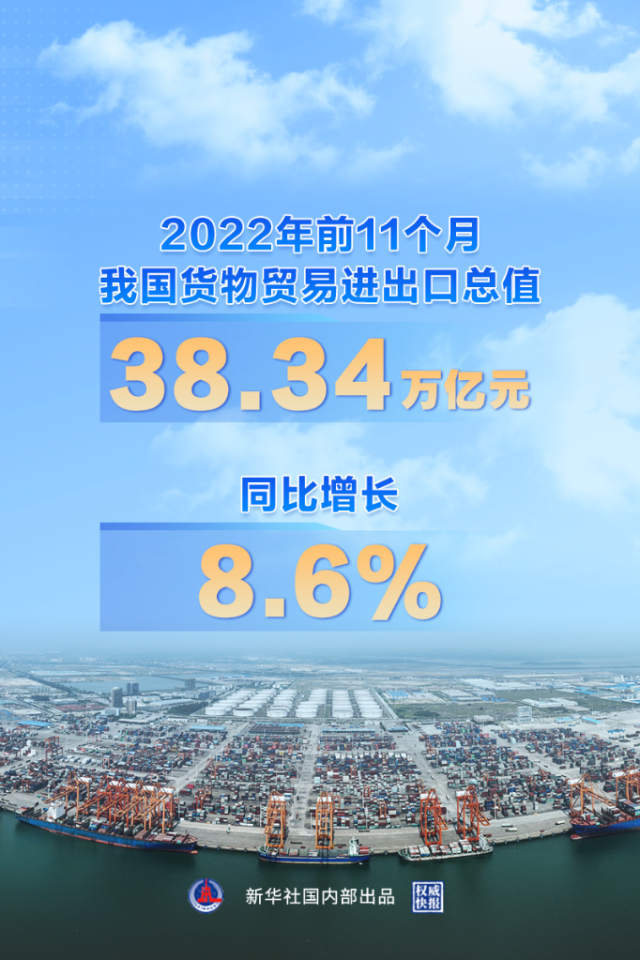 前11個(gè)月我國(guó)貨物貿(mào)易進(jìn)出口同比增長(zhǎng)8.6%