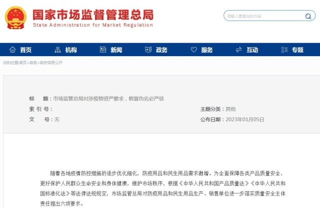 市場(chǎng)監(jiān)管總局:涉疫物資假冒偽劣必嚴(yán)懲