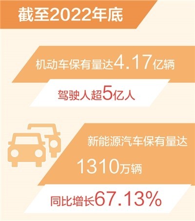 本報(bào)北京1月11日電 (記者張?zhí)炫啵┕膊?1日發(fā)布統(tǒng)計(jì)顯示,2022年全國機(jī)動車保有量達(dá)4.17億輛,其中汽車3.19億輛;全國機(jī)動車駕駛?cè)诉_(dá)5.02億人,其中汽車駕駛?cè)?.64億人。2022年全國新注冊登記機(jī)動車3478萬輛,新領(lǐng)證駕駛?cè)?923萬人。