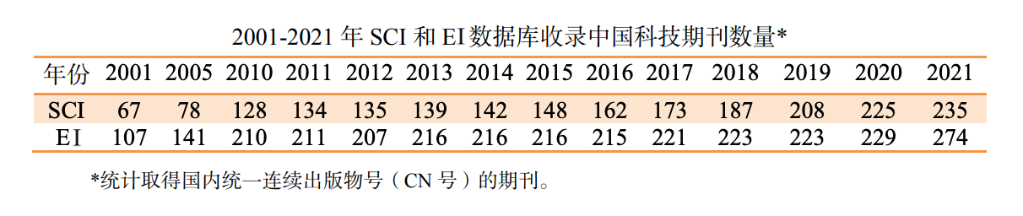 長(zhǎng)期以來(lái),與國(guó)家科技實(shí)力和科研產(chǎn)出水平相比,我國(guó)科技期刊發(fā)展相對(duì)滯后,國(guó)際顯示度偏低。該研究分析顯示,近年來(lái),隨著我國(guó)加快高水平科技期刊建設(shè),我國(guó)科技期刊的國(guó)際影響不斷擴(kuò)大,被國(guó)際重要檢索系統(tǒng)收錄的期刊數(shù)量越來(lái)越多。2021年,科學(xué)引文索引(SCI)收錄中國(guó)科技期刊235種;工程索引(EI)收錄中國(guó)科技期刊274種;醫(yī)學(xué)索引(Medline)收錄中國(guó)科技期刊147種。