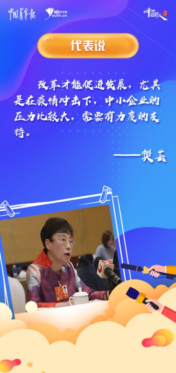 今年全國兩會,樊蕓關(guān)注恢復經(jīng)濟增長和提升市場活力方面,“改革才能促進發(fā)展,尤其是在疫情沖擊下,中小企業(yè)的壓力比較大,需要有力度的支持”。