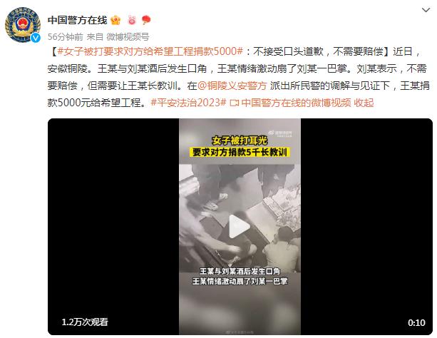 今年1月,一則“離奇”新聞曾引發(fā)網(wǎng)友們的熱議——在安徽銅陵,王某與劉某在酒后發(fā)生口角,王某情緒激動(dòng)下扇了劉某一巴掌。事后劉某表示不接受口頭道歉,不需要賠償,但要求王某捐款5000元給“希望工程”。