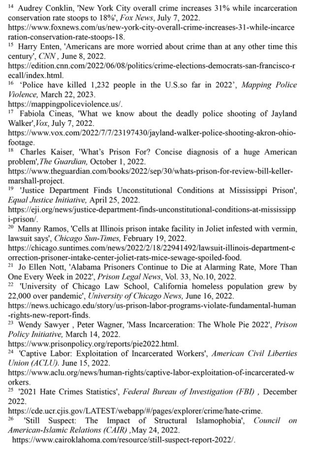 執(zhí)法司法領(lǐng)域種族歧視根深蒂固。聯(lián)合國消除種族歧視委員會的結(jié)論性報(bào)告指出,美國執(zhí)法人員對有色人種和少數(shù)族裔群體過度使用暴力并逍遙法外的情況仍然普遍存在;有色人種和少數(shù)族裔在美國司法系統(tǒng)中被逮捕、監(jiān)禁和長期虐待的情況突出。(注73)“警察暴力地圖”網(wǎng)站的數(shù)據(jù)顯示,在2013年至2022年的警察殺人事件中,非洲裔被警察殺害的可能性是白人的2.78倍,手無寸鐵的非洲裔被警察殺害的可能性是手無寸鐵的白人的1.3倍。在波士頓、明尼阿波利斯和芝加哥,非洲裔被警察殺害的可能性更是白人的20多倍。(注74)美國國家公共電臺2022年9月27日報(bào)道,國家免責(zé)登記處發(fā)布的報(bào)告指出,非洲裔在美國人口中所占比例不到14%,但在美國被誤判犯有嚴(yán)重罪行并在至少服完部分刑期后獲釋的所有人中,非洲裔占了53%;美國非洲裔因三項(xiàng)重大罪行被錯(cuò)誤定罪的可能性是白人的7倍,非洲裔因毒品犯罪被錯(cuò)誤定罪的可能性是其他人的19倍。(注75)美國國家學(xué)院出版的《美國監(jiān)禁的增長:探索原因和后果》一書指出,滲透著種族主義的刑事司法系統(tǒng)“正日益成為一個(gè)更大的污名化和長期邊緣化系統(tǒng)的主要通道”。(注76)