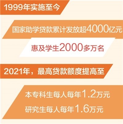 貸款額度不斷提高。政策實施初期,全日制普通本??粕?、研究生最高貸款額度每人每年6000元;2014年,提高至本??粕罡哔J款額度每人每年8000元、研究生每人每年1.2萬元;2021年,提高至本??粕罡哔J款額度每人每年1.2萬元、研究生每人每年1.6萬元。