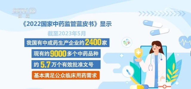 《2022國家中藥監(jiān)管藍(lán)皮書》顯示,截至2023年5月,我國有中成藥生產(chǎn)企業(yè)約2400家,現(xiàn)有約9000多個(gè)中藥品種,約5.7萬個(gè)有效批準(zhǔn)文號(hào),基本滿足公眾臨床用藥需求。