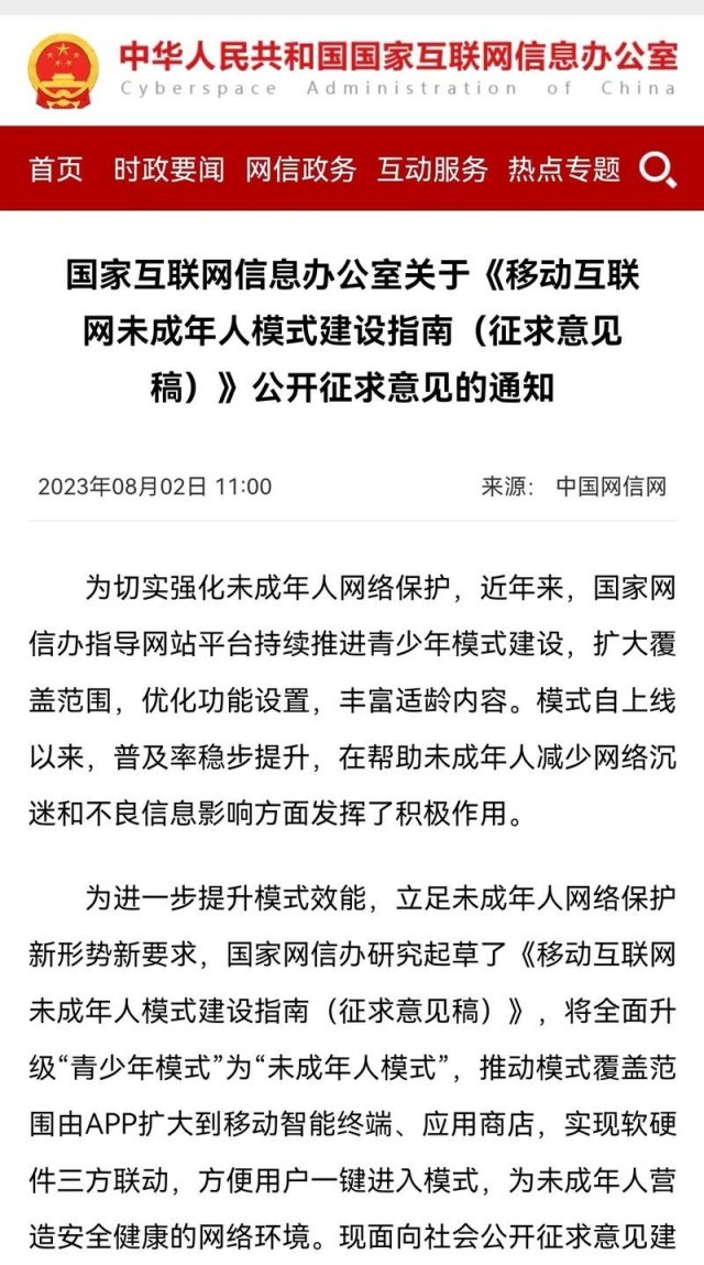 將全面升級“青少年模式”為“未成年人模式”! 《移動(dòng)互聯(lián)網(wǎng)未成年人模式建設(shè)指南》征求意見