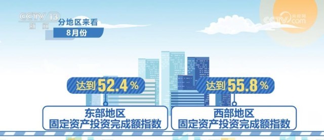8月份,固定資產(chǎn)投資完成額指數(shù)為50.6%,2023年2月份以來一直呈擴(kuò)張態(tài)勢。分地區(qū)來看,8月份,東部和西部地區(qū)固定資產(chǎn)投資完成額指數(shù)分別達(dá)到52.4%和55.8%。