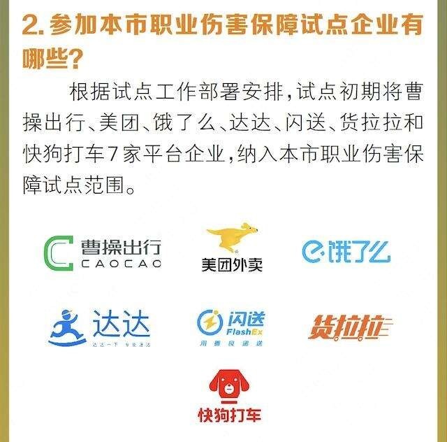 據(jù)了解,“新型社?!痹圏c(diǎn)從去年7月1日啟動實(shí)施,第一批試點(diǎn)在曹操出行、美團(tuán)、餓了么、達(dá)達(dá)、閃送、貨拉拉、快狗打車7家平臺企業(yè),在全國7個(gè)省市開展。