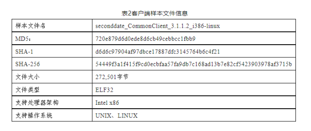“二次約會”(SecondDate)間諜軟件支持在Linux、FreeBSD、Solaris、JunOS等各類操作系統(tǒng)上運行,同時兼容i386、x86、x64、SPARC等多種體系架構(gòu),適用范圍較廣。