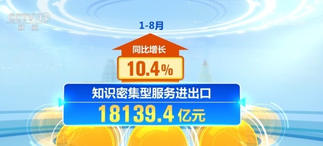 知識(shí)密集型服務(wù)貿(mào)易占比提升。1—8月,知識(shí)密集型服務(wù)進(jìn)出口18139.4億元,同比增長(zhǎng)10.4%,占服務(wù)進(jìn)出口總額的比重達(dá)42.6%,較上年同期提升0.9個(gè)百分點(diǎn)。知識(shí)密集型服務(wù)出口10513.6億元,增長(zhǎng)13.1%,知識(shí)密集型服務(wù)進(jìn)口7625.8億元,增長(zhǎng)6.9%。