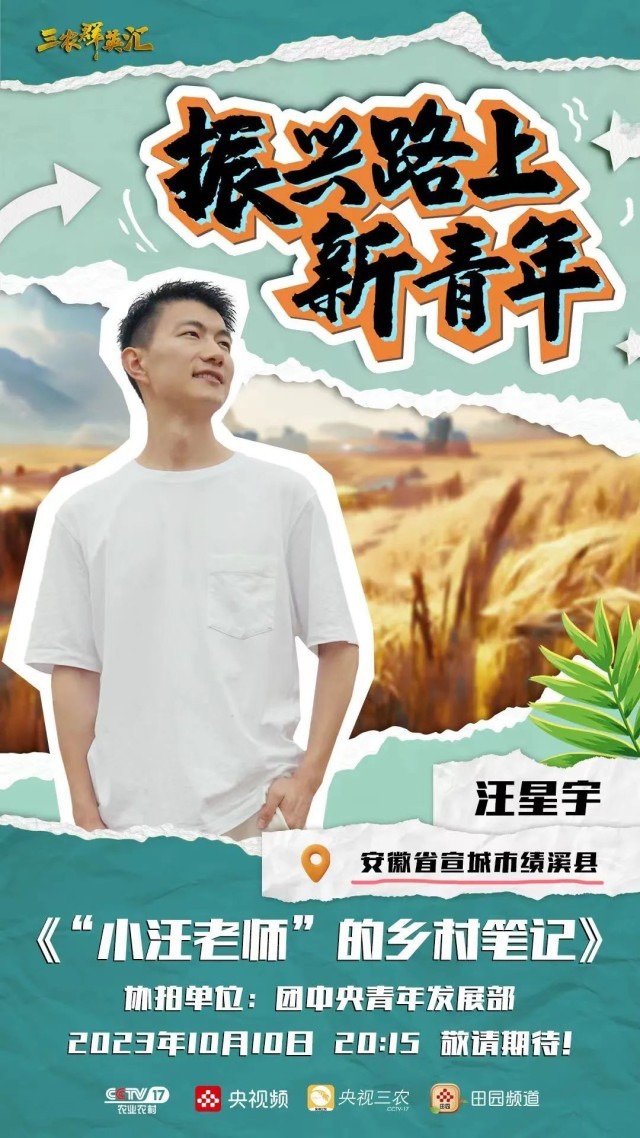 為深入貫徹落實黨的二十大精神,認真學(xué)習宣傳貫徹習近平總書記在同團中央新一屆領(lǐng)導(dǎo)班子集體談話時的重要講話精神,進一步發(fā)揮鄉(xiāng)村振興青年先鋒模范帶動作用,引導(dǎo)鼓勵廣大青年在全面推進鄉(xiāng)村振興、加快建設(shè)農(nóng)業(yè)強國中挺膺擔當、貢獻力量,共青團中央青年發(fā)展部聯(lián)合中央廣播電視總臺農(nóng)業(yè)農(nóng)村節(jié)目中心,共同推出電視專題紀錄片《振興路上新青年》。