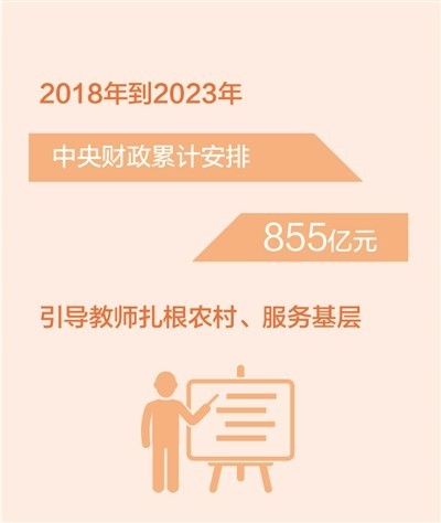 2018年到2023年 中央財政累計安排855億元引導(dǎo)教師扎根農(nóng)村、服務(wù)基層