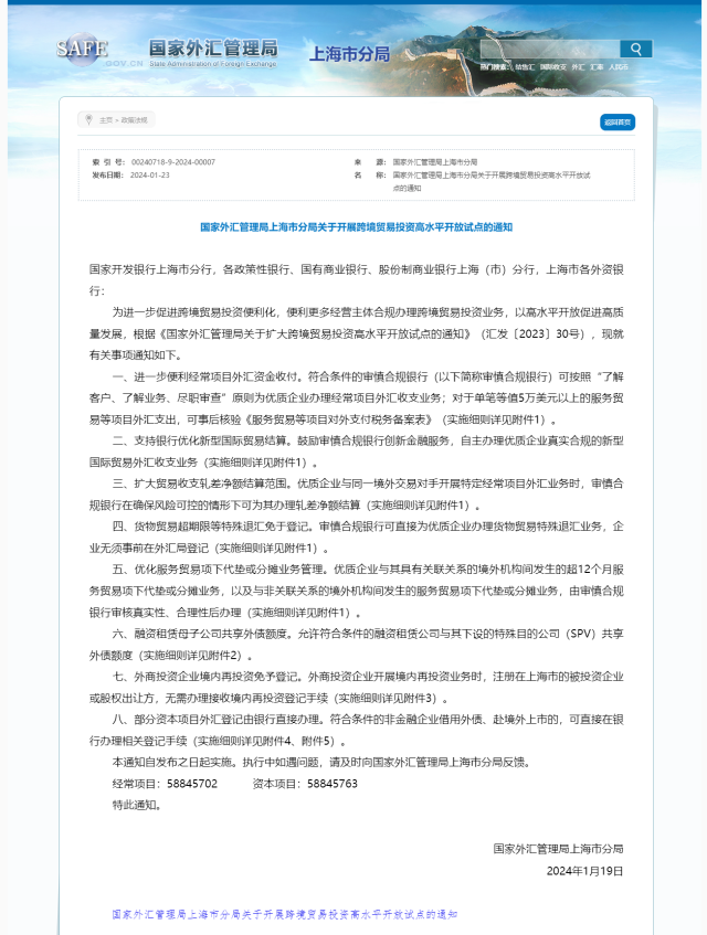 央視網消息:1月23日,國家外匯管理局上海市分局發(fā)布《關于開展跨境貿易投資高水平開放試點的通知》。