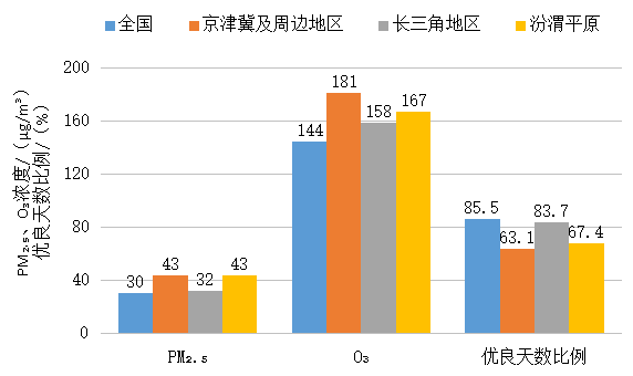 1—12月,全國339個地級及以上城市平均空氣質(zhì)量優(yōu)良天數(shù)比例為85.5%,扣除沙塵異常超標(biāo)天后,實際為86.8%,好于年度目標(biāo)0.6個百分點,較疫情前的2019年同期(82.0%)上升3.5個百分點;平均重度及以上污染天數(shù)比例為1.6%,扣除沙塵異常重污染天后,實際為1.1%;PM2.5平均濃度為30微克/立方米,優(yōu)于年度目標(biāo)(32.9微克/立方米)2.9微克/立方米,較疫情前的2019年同期(36微克/立方米)改善16.7%;O3平均濃度為144微克/立方米,同比下降0.7%,較疫情前的2019年同期下降2.7%;PM10平均濃度為53微克/立方米,同比上升3.9%;SO2平均濃度為9微克/立方米,同比持平;NO2平均濃度為22微克/立方米,同比上升4.8%;CO平均濃度為1.0毫克/立方米,同比下降9.1%。