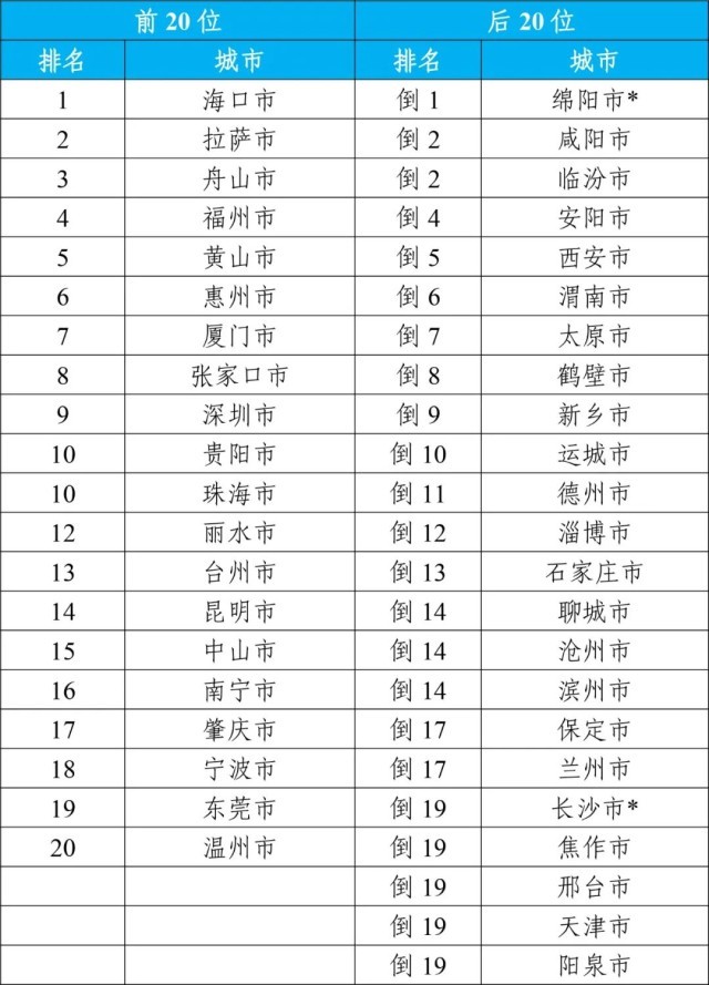 12月,168個重點城市中:空氣質(zhì)量排名前20位城市依次是昆明、拉薩和張家口等城市(從第1名至并列第19名);空氣質(zhì)量排名后20位城市依次是咸陽、蘭州和渭南等城市(從倒數(shù)第1名至倒數(shù)第20名)。見附表1。
