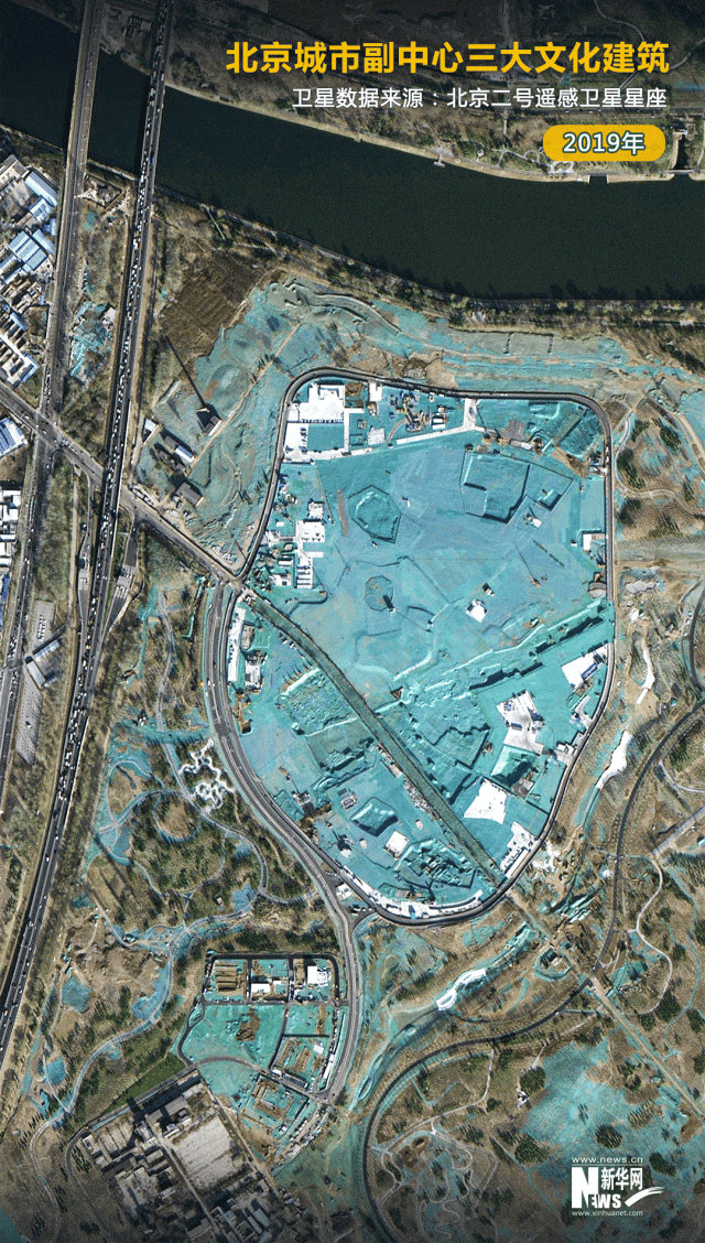 衛(wèi)星圖顯示,在皚皚白雪映襯下,北京藝術(shù)中心的古糧倉造型格外顯眼;北京大運河博物館的“古韻風帆”意蘊濃厚;北京城市圖書館設(shè)計別致,好似“赤印”落于城市綠心的畫卷上……