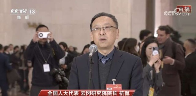 3月5日,十四屆全國人大二次會(huì)議首場(chǎng)“代表通道”上,全國人大代表、云岡研究院院長杭侃接受采訪。直播截圖