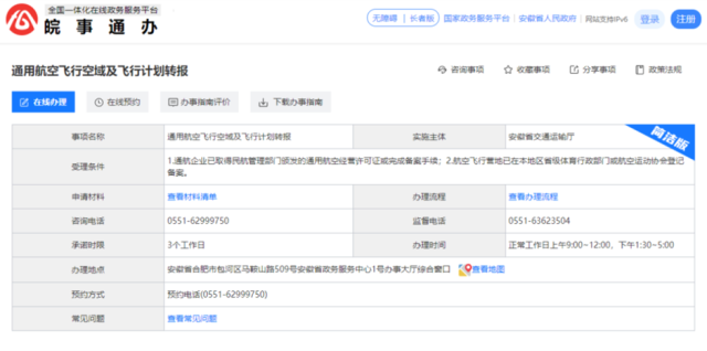 皖事通辦——通用航空飛行空域及飛行計(jì)劃轉(zhuǎn)報(bào)