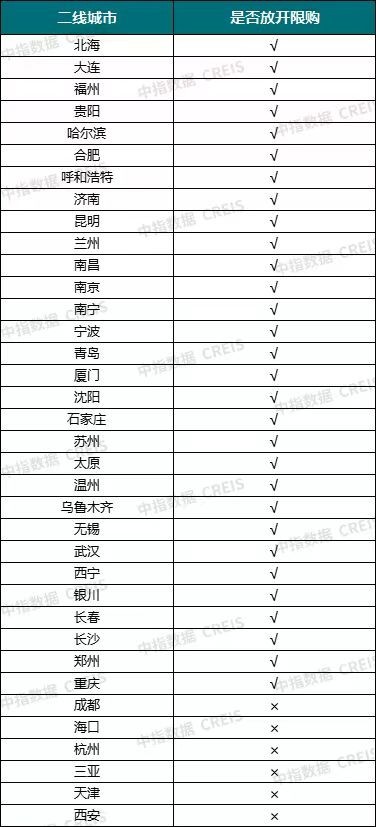 據(jù)中指研究院監(jiān)測數(shù)據(jù),截至目前,核心二線城市中,僅成都、???、杭州、三亞、天津、西安保留部分限購政策。