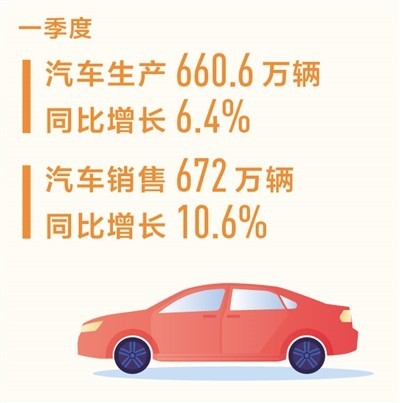 一季度汽車銷量同比增長10.6% 新能源汽車國內(nèi)銷量同比增長33.3%