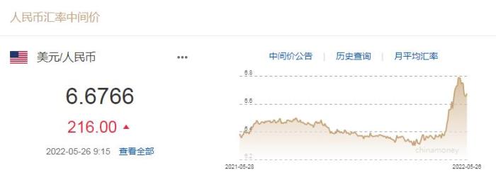 中新財經(jīng)5月26日電 中國人民銀行授權(quán)中國外匯交易中心公布,2022年5月26日銀行間外匯市場人民幣匯率中間價為:1美元對人民幣6.6766元。這較上一交易日下調(diào)216個基點。(完)