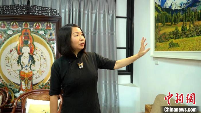 孟德芝正在介紹蜀繡作品。 唐啟浩 攝