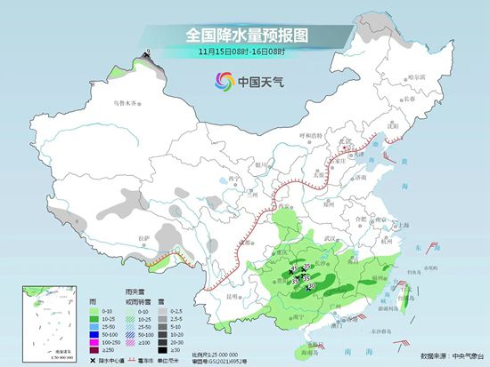 后天,新疆北部和南疆盆地、西藏東部、青海南部和西部等地部分地區(qū)有小到中雪,其中,新疆沿天山地區(qū)等地部分地區(qū)有大雪。西北地區(qū)東部、華北西南部、西南地區(qū)東部、黃淮西部、江淮、西南地區(qū)、華南大部等地部分地區(qū)有小到中雨,其中,湖南南部、廣西東北部、廣東西北部、江西西南部等地局地有大到暴雨。