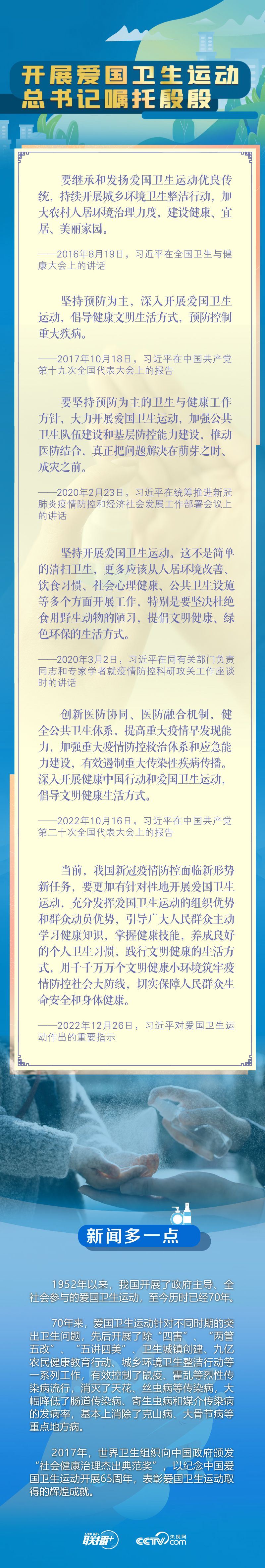 黨的十八大以來,總書記多次對(duì)開展愛國(guó)衛(wèi)生運(yùn)動(dòng)提出明確要求、作出重要部署,飽含人民情懷,央視網(wǎng)《聯(lián)播+》與您一起重溫。