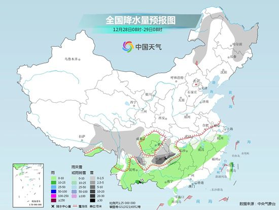 中國天氣網(wǎng)訊 在冷空氣與西南暖濕氣流配合之下,今天(12月28日),南方各地降水繼續(xù)發(fā)展。預(yù)計(jì),湖南、貴州、云南等地局地有中雪或大雪,降溫重心也集中到了長江以南地區(qū),各地濕冷加重,上述地區(qū)公眾需做好防范雨雪和防寒保暖工作。