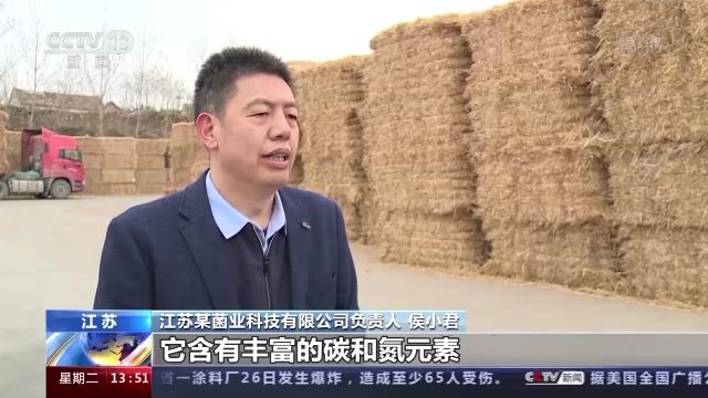 江蘇某菌業(yè)科技有限公司負責(zé)人 侯小君:麥秸稈是我們種植雙孢菇的基本原料,它含有豐富的碳和氮元素,我們把它和雞糞混合攪拌之后,培養(yǎng)出我們種植雙孢菇的基料。我們現(xiàn)在年產(chǎn)雙孢菇大概4萬噸,一年消耗秸稈用料5.7萬噸左右。