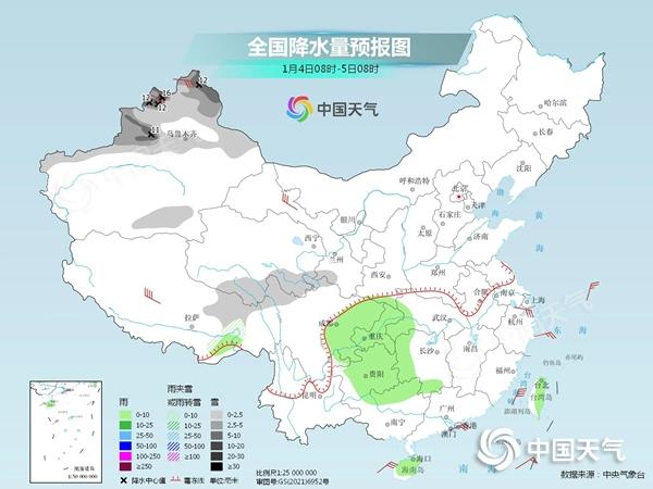 今起三天,我國降水區(qū)域仍將集中在西南地區(qū),新疆等部分地區(qū)降雪也比較頻繁。其中今天,新疆北部、西藏東南部、青海中部、甘肅南部、陜西西南部等地部分地區(qū)有小到中雪或雨夾雪,其中,新疆北疆北部等高海拔地區(qū)有大到暴雪(10~16毫米)。四川盆地、重慶西部、貴州中西部、云南東部、海南島、臺(tái)灣島等地部分地區(qū)有小雨。