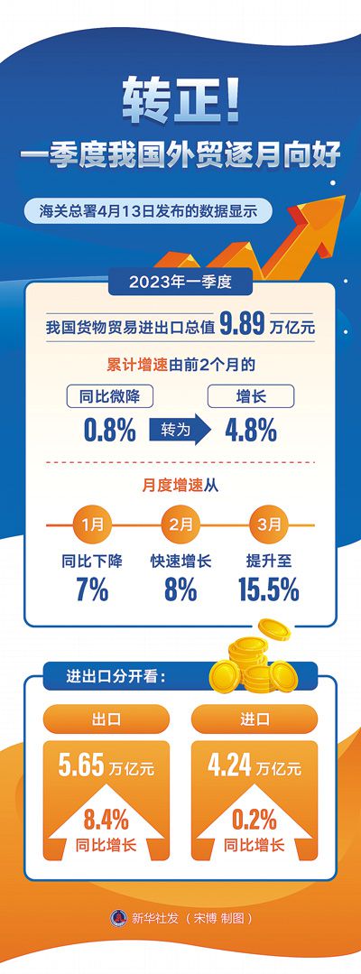 -7%、8%、15.5%,一季度3個月份,中國外貿(mào)跑出了進出口增速的向上曲線,也跑出了復雜背景下全年保穩(wěn)提質(zhì)的篤定和信心。