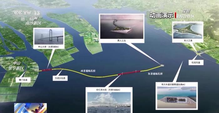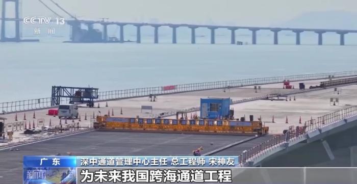 深中通道管理中心主任、總工程師 宋神友:未來,珠江西岸的人跟深圳機場以及前海實現(xiàn)快速交通轉(zhuǎn)換,就是通過在東岸設(shè)置了一個高速公路水下樞紐互通立交的形式,所以最終這個項目就是采用了橋島隧水下樞紐互通于一體的跨海集群工程。