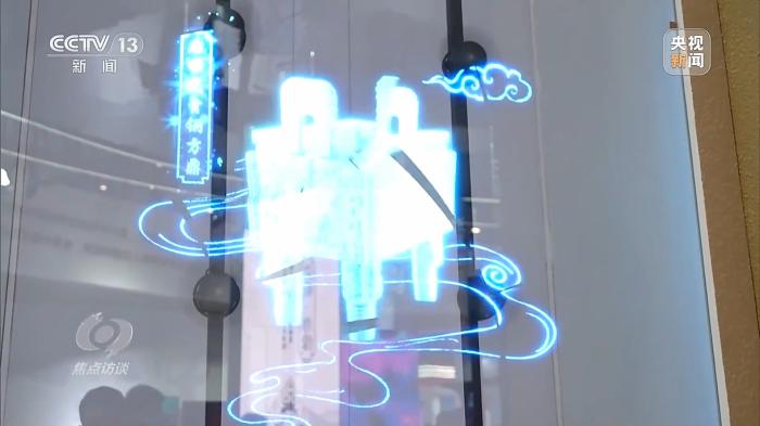 在AI繪畫一旁,國家級保護(hù)文物司母戊大方鼎、青銅縱目面具、四羊方尊、越王勾踐劍、曾侯乙編鐘等正以數(shù)字化形式呈現(xiàn)在觀眾面前。參展商通過數(shù)字孿生技術(shù)復(fù)現(xiàn)或重構(gòu)文物和文化遺產(chǎn)的數(shù)字鏡像,從而實現(xiàn)文物和文化遺產(chǎn)的保護(hù)、修復(fù)直至永久性保存和活態(tài)化傳承。觀眾既可以看到部分真實的復(fù)制文物和文化遺產(chǎn),又可以體驗虛擬的數(shù)字文物和文化遺產(chǎn),虛實之間,體會數(shù)字化給傳統(tǒng)文物和文化遺產(chǎn)帶來的生命力。