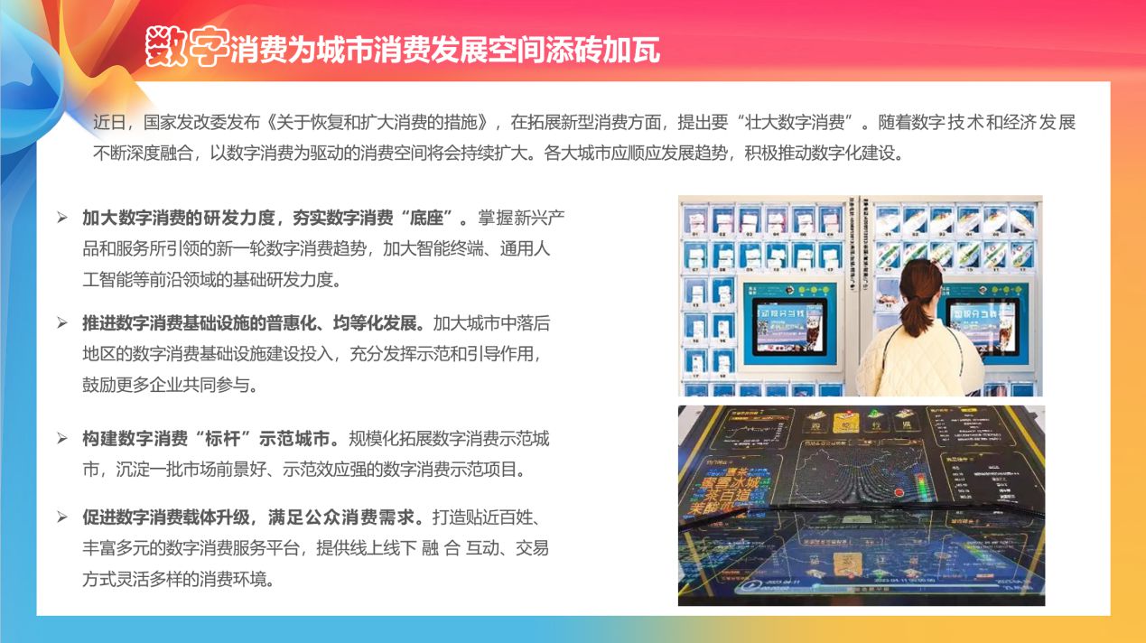 隨著數(shù)字技術(shù)和經(jīng)濟發(fā)展不斷深度融合,以數(shù)字消費為驅(qū)動的消費空間將會持續(xù)擴大?!秷蟾妗方ㄗh,各大城市應(yīng)順應(yīng)發(fā)展趨勢,積極推動數(shù)字化建設(shè)。規(guī)?;卣箶?shù)字消費示范城市,沉淀一批市場前景好、示范效應(yīng)強的數(shù)字消費示范項目。打造貼近百姓、豐富多元的數(shù)字消費服務(wù)平臺,提供線上線下融合互動、交易方式靈活多樣的消費環(huán)境。(人民網(wǎng)-北京頻道)