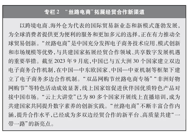貿易投資平臺作用更加凸顯。中國國際進口博覽會是全球首個以進口為主題的國家級展會,已連續(xù)成功舉辦五屆,累計意向成交額近3500億美元,約2000個首發(fā)首展商品亮相,參與國別與參與主體多元廣泛,成為國際采購、投資促進、人文交流、開放合作、全球共享的國際公共平臺。中國進出口商品交易會、中國國際服務貿易交易會、中國國際投資貿易洽談會、中國國際消費品博覽會、全球數字貿易博覽會、中非經貿博覽會、中國-阿拉伯國家博覽會、中俄博覽會、中國-中東歐國家博覽會、中國-東盟博覽會、中國-亞歐博覽會等重點展會影響不斷擴大,有力促進了共建國家之間的經貿投資合作。中國香港特別行政區(qū)成功舉辦了8屆“一帶一路”高峰論壇,中國澳門特別行政區(qū)成功舉辦了14屆國際基礎設施投資與建設高峰論壇,在助力共建“一帶一路”經貿投資合作中發(fā)揮了重要作用。