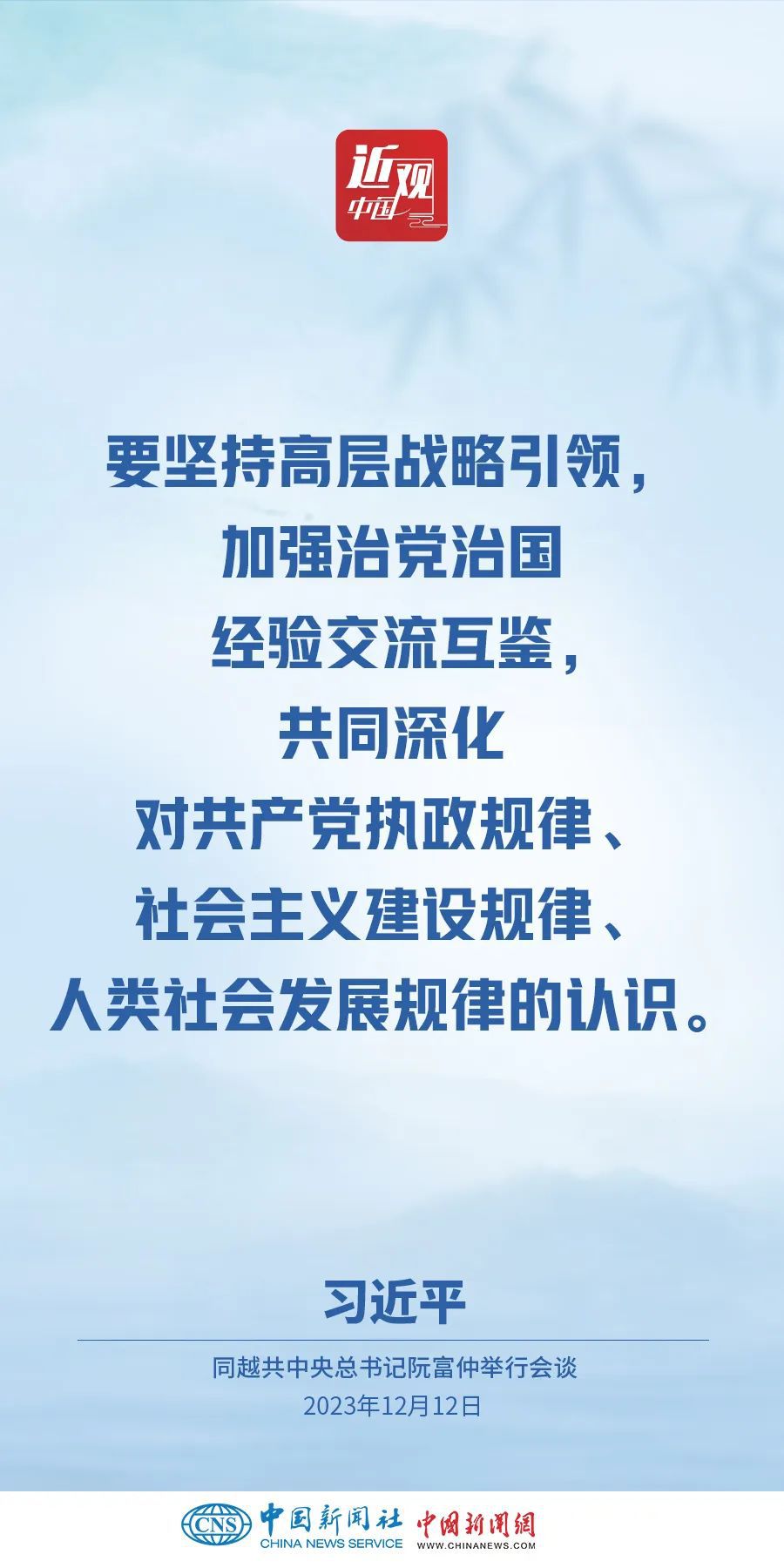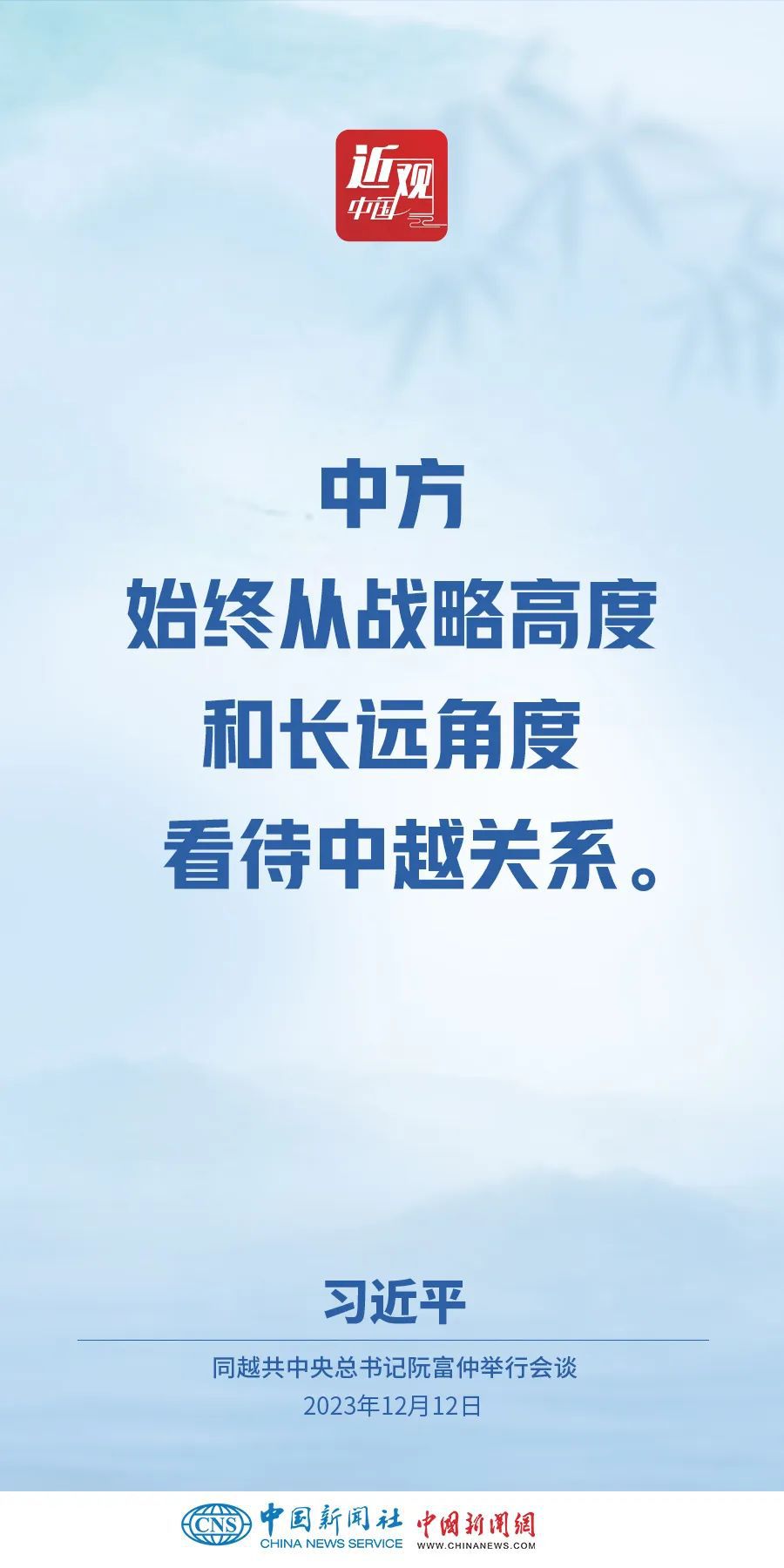當?shù)貢r間12月12日下午,剛剛抵達河內(nèi)的中共中央總書記、國家主席習近平在越共中央駐地同越共中央總書記阮富仲舉行會談。雙方宣布中越兩黨兩國關系新定位,在深化中越全面戰(zhàn)略合作伙伴關系基礎上,攜手構建具有戰(zhàn)略意義的中越命運共同體。習近平指出——