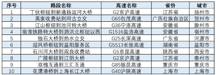 表 春節(jié)易擁堵緩行路段
