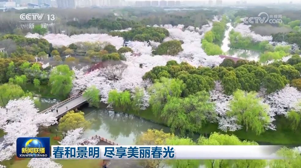 在上海寶山區(qū),公園里迎來(lái)盛花期的櫻花,美不勝收,這片櫻花的海洋吸引人們徜徉其中、駐足拍照。在陜西西安,這條兩公里長(zhǎng)的道路兩旁,數(shù)百棵櫻花樹(shù)競(jìng)相綻放,延綿成一片花海,市民和車輛從中經(jīng)過(guò),享受著古城春天這抹浪漫的色彩。在河北滄州,梨花盛開(kāi),雪白的梨花令人陶醉,眾多游客前來(lái)感受春日美景。