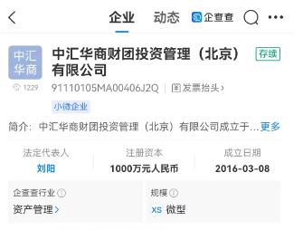 中新財經(jīng)還以“華商財團(tuán)”為關(guān)鍵詞通過企查查APP進(jìn)行搜索,出現(xiàn)“中匯華商財團(tuán)投資管理(北京)有限公司”、“中信華商財團(tuán)國際投資集團(tuán)有限公司”兩項最為相關(guān)的結(jié)果。前者為注冊資本1000萬元人民幣的小微企業(yè),后者則被標(biāo)注“已告解散”。