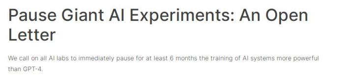 呼吁暫停巨型AI訓練的公開信。圖片來源:“未來生命研究所”網站