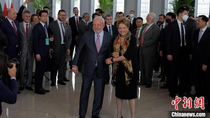 13日,正在上海訪問的巴西總統(tǒng)盧拉出席了巴西前總統(tǒng)羅塞夫擔(dān)任金磚國家新開發(fā)銀行行長的就職典禮??涤裾?攝