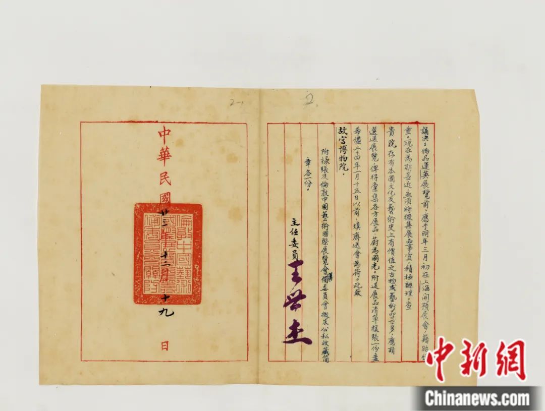倫敦中國藝術(shù)國際展覽會(huì)籌備委員會(huì)公函(1) 故宮博物院 供圖