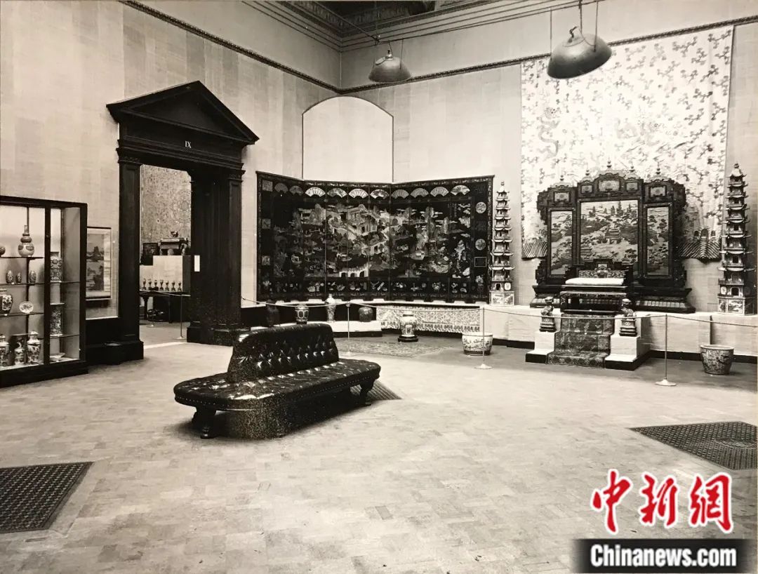 倫敦中國藝術(shù)國際展覽會(huì)上展出的皇帝寶座與屏風(fēng)。圖片來源:The Royal Academy of Arts