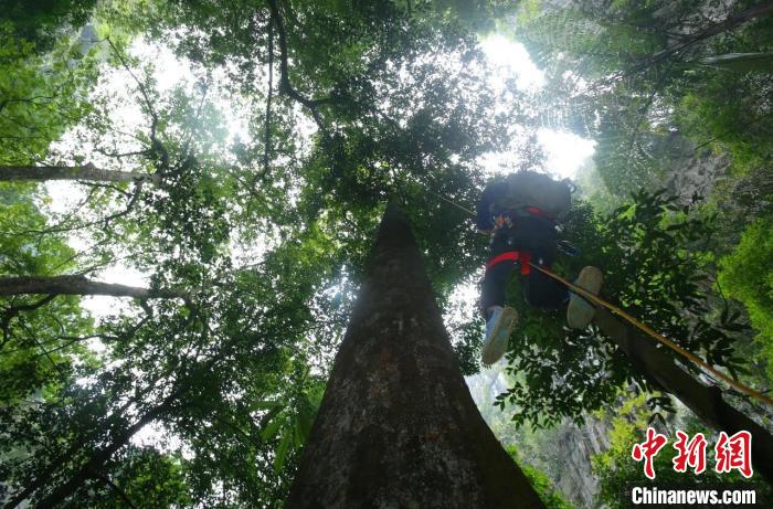 科考人員攀樹(shù)測(cè)量。 廣西林業(yè)局供圖