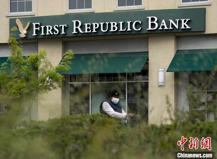 當?shù)貢r間5月1日,行人從美國加州米爾布雷市一家第一共和銀行附近經(jīng)過。 中新社記者 劉關關 攝