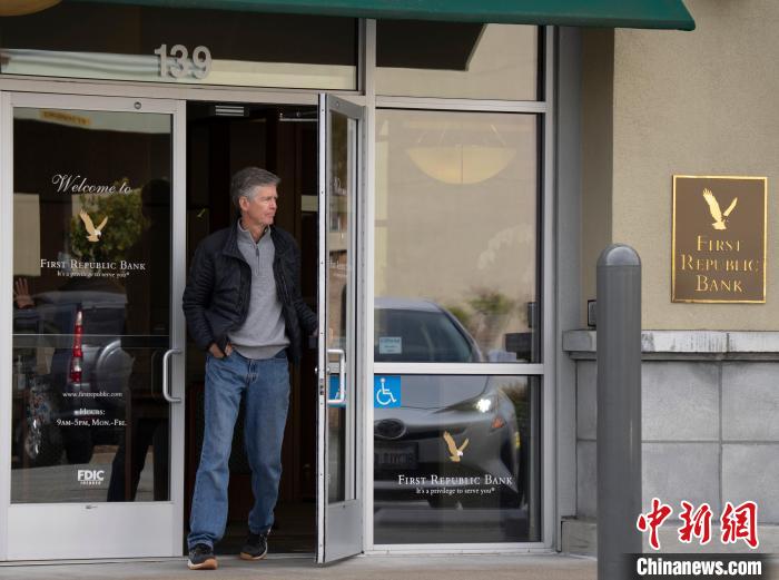 當?shù)貢r間5月1日,一名男子走出位于美國加州米爾布雷市的一家第一共和銀行。 中新社記者 劉關關 攝