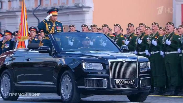 俄國防部長紹伊古乘車檢閱。圖片來源:俄羅斯第一頻道視頻截圖